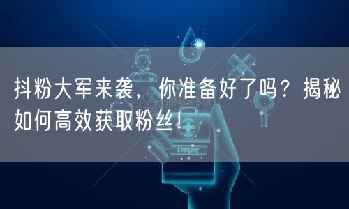 本文将为你揭示抖粉大军来袭背后的秘密,教你如何高效获取粉丝,掌握抖音营销技巧,制定有效的粉丝增长策略,助力你在社交媒体平台上脱颖而出。